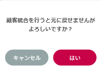 ⑦ 「顧客統合を行うともとに戻せませんがよろしいですか?」というメッセージが表示されますので、よければ[はい]をクリックします。