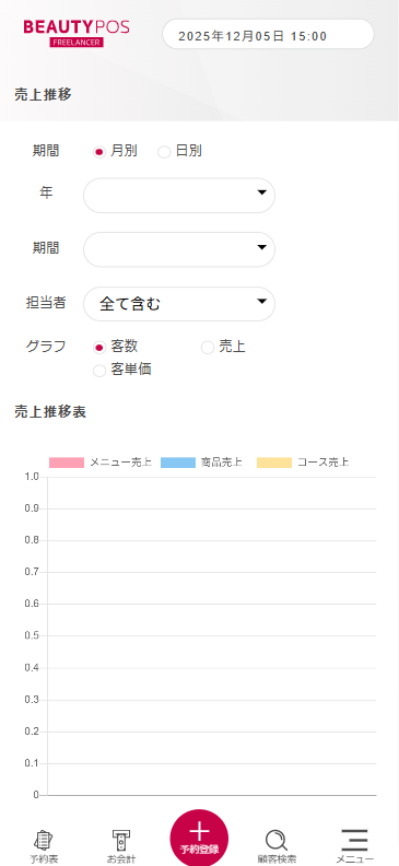 期間・・・売上データの集計単位を選択します。「月別」または「日別」を選択可能です。